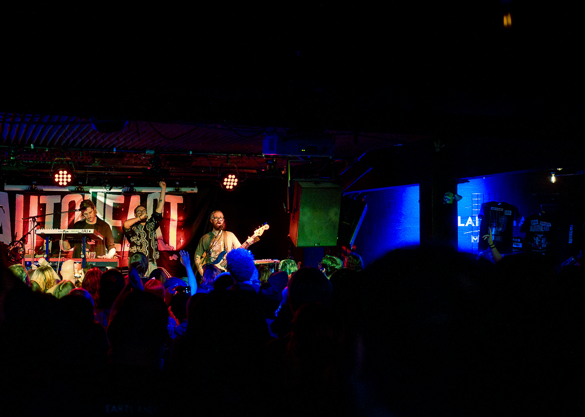 Photos by Devon Anderson – Autoheart have carved out a beautifully off-center niche in the indie-pop landscape — a band whose shimmering melodies and brutally honest lyricism strike with the intimacy of a confession and the sweep of a cinematic score. Formed in London, the trio built early buzz through their lush arrangements, piano-driven hooks, and a songwriting style that lays emotional truth bare without flinching. Their music walks the line between melancholic and euphoric, pairing bittersweet storytelling with the kind of melodic craftsmanship that feels tailor-made for late-night headphones and early-morning revelations.