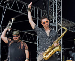Earlier in the day, Ripe lit up the stage with an energetic set that almost didn’t happen, frontman Robbie Wulfsohn explained a golf cart crash recently in Hampton Beach, New Hampshire left him with a mild concussion and a strict “no headbanging” order from his doctor. Later in the day, The Elovaters took the Stoke Stage and played their hit song “Gardenia”.