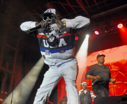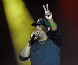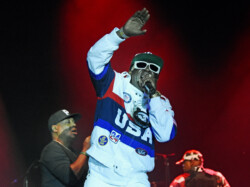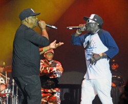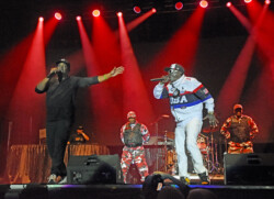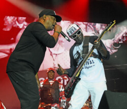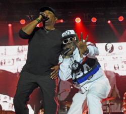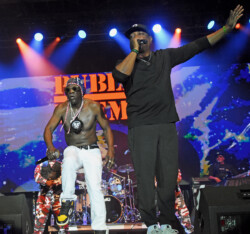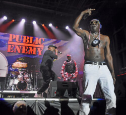 Public Enemy is known for their politically charged lyrics and their impact on both the music industry and social activism. Chuck D (Carlton Ridenhour) and Flavor Flav (William Drayton), took the stage and performed many of their hits like “Don’t Believe the Hype” and “Fight the Power” to an enthusiastic audience. Fans at the show were treated to see Flavor Flav, 65, show off his other talents of playing bass guitar and playing a drum solo during one song all while performing in a USA water polo team cap. And after Flav made an error on stage during a song Chuck D asked Flav to do five push-ups. Flav, the ever flamboyant showman, did 25 push-ups to the roar of the crowd.