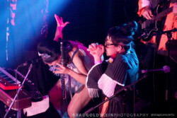 Photos by Brad Goldstein – Teke Teke is a Montreal-based band that combines elements of Japanese horror folklore with psychedelic rock and surf music. The band’s name comes from a legendary ghost of a woman who was cut in half by a train and now haunts the tracks, known for her distinctive sound of “teke teke” as she moves. Their music is characterized by haunting melodies, reverb-drenched guitars, and a sense of unease that permeates their sound. With their unique blend of musical influences and eerie aesthetic, Teke Teke has carved out a niche for themselves in the Montreal music scene and beyond.