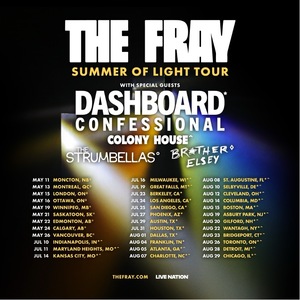 Multi-Platinum band The Fray announces the Summer of Light Tour, featuring special guests Dashboard Confessional, Colony House, The Strumbellas and Brother Elsey on select dates. The North American tour, promoted by Live Nation, kicks off on May 11th in Moncton, New Brunswick, with stops across Canada and the U.S. in Montreal, Calgary, Vancouver, Kansas City, Minnesota, Los Angeles, San Diego, Austin, Atlanta, Boston, and more before wrapping up on August 29 in Chicago, IL.